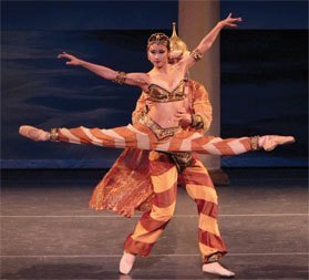 The choreography (by artistic directors Thordal Christensen and Colleen Neary) wasn't as clever and intricately detailed as Ratmansky's but it was still very lovely classical ballet. My favorite overall was the Arabian (pictured above). The couple entered the stage with the man holding the woman high above his head in a beautifully snaky overhead lift. The female dancer, Julia Cinquemani, was really flexible and long-limbed and she did an excellent job with the part. She also had terrific stage presence, and I'm not the only one who thought so – they got huge applause at the end.