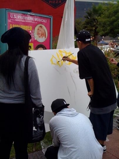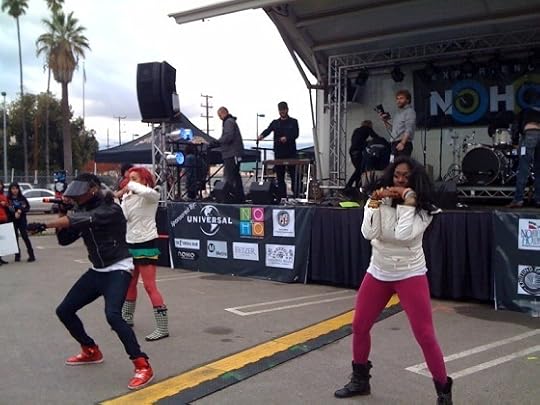 Here are a few photos of my trip to the NoHo Arts Festival last weekend. NoHo (North Hollywood) is kind of a bohemian area that, to New Yorkers, I'd liken to Bushwick. There are lots of dance studios (mainly teaching hip hop and jazz, some ballet), acting studios, very small theaters (as in off, off-Broadway), and a few galleries. For the festival, they had these little stations around town where all passersby could contribute to a work of art.