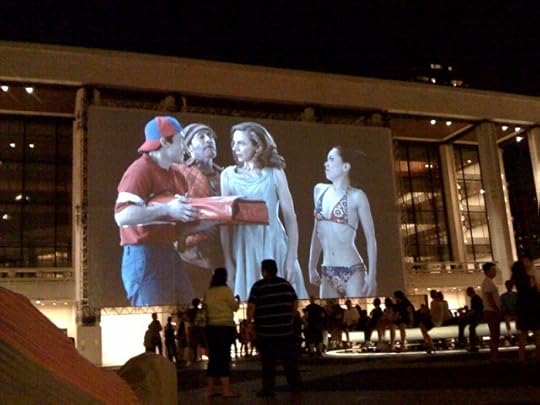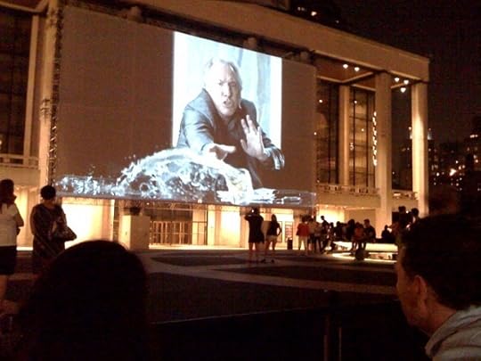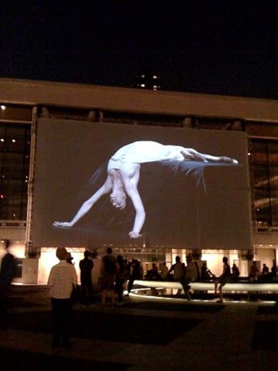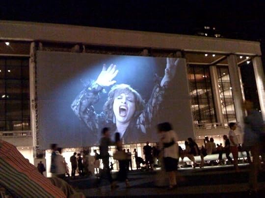 Here are some photos I took of David Michalek's current installation, Portraits in Dramatic Time, shown nightly on the facade of the Koch Theater at Lincoln Center Plaza. Above is (SLSG favorite) ballerina Alessandra Ferri, apparently in the ending scene from Romeo and Juliet. Commissioned for the Lincoln Center Festival, Portraits is similar to Michalek's earlier installation from a few summers ago, Slow Dancing, which I wrote about here.