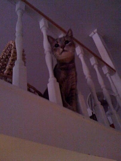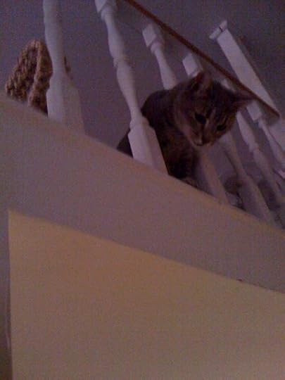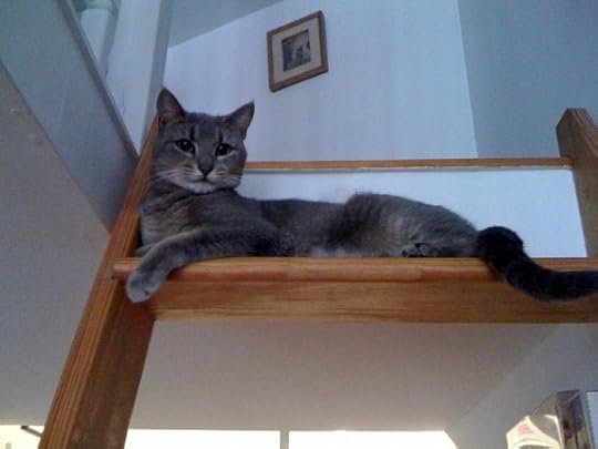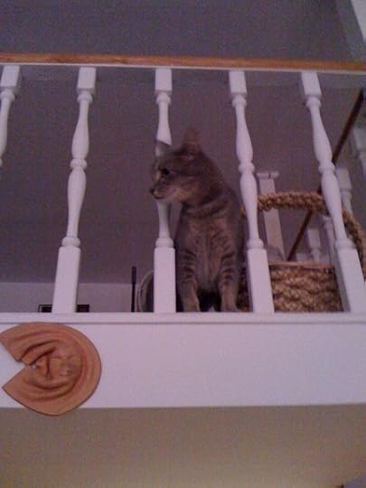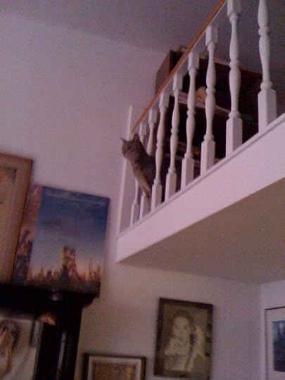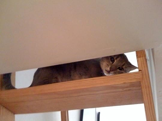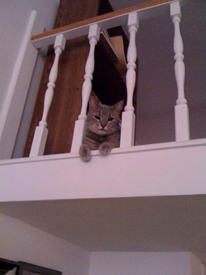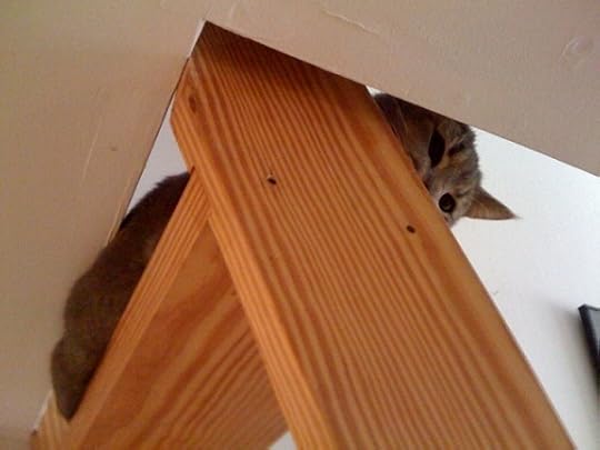 Sorry, love my new kitty and can't resist! It's hard to believe she was so shy in the ASPCA and when she first came to live with me because she's now into absolutely everything. Which kind of worries me because this apartment is perhaps a bit dangerous for an inquisitive cat. She loves to run up the ladder / stairs to my bedroom loft and then run all around its pretty small perimeter, peeking out from time to time between the little pillars.