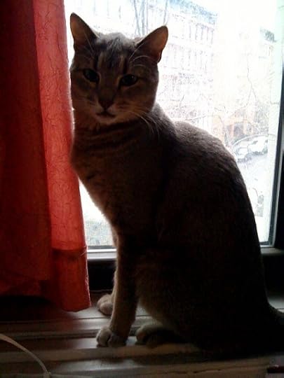 I finally got a new kitty. My beloved former cat died of congestive heart failure several years ago and it took me a while to get over it. Finally, a couple weeks ago I went to the ASPCA, where I met Rhea. I love the ASPCA by the way – they are wonderful people there who do wonderful things. Anyway, Rhea's a sweet little Abyssinan mix. Of course she was very quiet her first few days with me, but now she's a nut, particularly at nighttime of course, running up and down the ladder / stairs of my bedroom loft, doing gymnastics around its pillars, playing basketball down on the floor with some little toy balls with bells that were given to her by her friend, Lula, who lives across town. And yes, I meant basketball, not soccer or hockey. I have no idea what she does with the balls to make them bounce the way they do… because whatever it is she's doing it's in the dark when I'm trying to sleep…