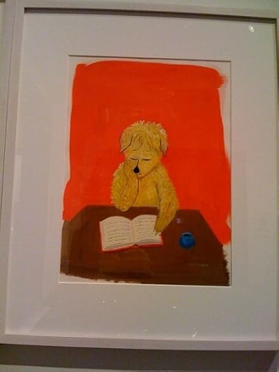 As I walked through the exhibit, I happened upon a couple of sets of videos. In one Kalman, who seems to be quite a character, was collaborating on a performance piece with Nico Muhly and an opera star (whose name I forgot). Muhly was his usual slightly whacked self. Fun! Kalman's also been involved in a lot of social projects, such as helping to design and create art work for a new library in Harlem. And, much of her work features her dog (below).