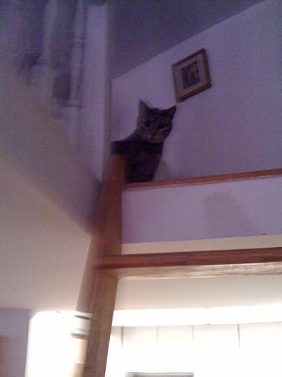 And the other thing she loves to do is jump back and forth between the corner of the loft and the top mantel of the fireplace. I had to clear everything off of the mantel so she'd have a place to step. Worries me! I've tried to put soft mats and things all around under the mantel and around the edges of the loft. I guess you just can't worry about all that cats will get into…