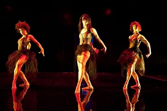 I was sad to see that Nicole Wolcott is no longer with the company (I'd forgotten she left) but Liz Riga (the dancer in the middle of the top photo above) has taken her place as my favorite in the company. Loved the way she'd whip her head about, her long black hair flying wickedly, and the way she'd forcefully strike out at her partner during the darker moments. And I love her size!