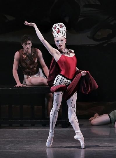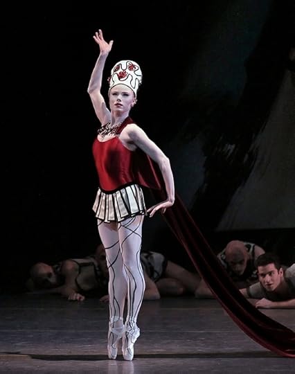 Last week was Sara Mearns week for me (well, for many New York ballet fans, I suspect). On Tuesday night, she made her debut as the Siren in NYCB's Prodigal Son. (I'm still awaiting photos and will post as soon as I receive them!) Sean Suozzi danced the lead role. He did very well, but she just always stands out to me whatever she is in – particularly the story ballets. She was the best, most tantalizing, sinister, seductive, all around captivating Siren I've ever seen. The way she whipped that cape in between her legs, wrapping it around each one, the way she'd bend her knees slowly into a second-position plie while on point, basically squatting over the son's head in a suggestive but also sinister manner, the way she'd raise her hand behind her head with the wrist bent and the fingers splayed to indicate her triumph over the son's will, even just the way she'd walk out onstage on pointe, tiptoeing all around him – everything, every movement was in service of the character and was an integral part of the character's story. I often feel like I'm seeing steps with other dancers. Just steps. The pas de deux between the son and the siren contains some of Balanchine's oddest-looking choreography- especially those lifts – 'here, stand on my knees, wrap your legs around my neck and let me carry you around like that,' etc. I imagine it would feel very odd and foreign doing some of that, which of course was the point. It's supposed to look warped and off-kilter. Everyone has mastered those steps, but to me, Mearns makes it the most deliciously warped. I love her.