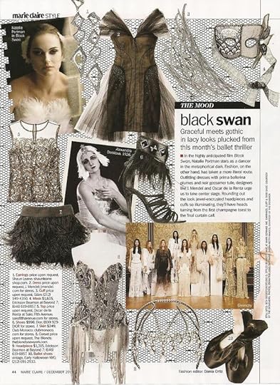 I was flipping through Marie Claire and saw this spread on current fashions inspired by the Black Swan movie: