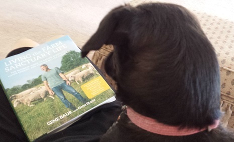 Our sister Sofia reading Living the Farm Sanctuary Life by Gene Baur with Gene Stone, which we found at Changing Hands Bookstore in Tempe, AZ.