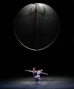 Photos by Paul Kolnik. Top: Robert Fairchild and Kathryn Morgan under Santiago Calatrava's magnificent set; bottom: Erica Pereira and Anthony Huxley.