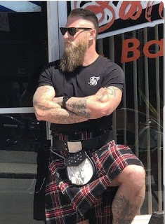 Yeah, it's true, I am a fan of men in kilts -- notice I did not say "skirts" because a kilt, my friend, is not a skirt - - it's a magical, beautiful thing, but it isn't a skirt. There are very few things in this world that will stop me in my tracks leaving my lower chin on the ground, than to see a big, husky, bearded Scotsman tying the laces of his dirty black boots (knee slightly elevated of course) on a rock, while wearing his family colors. Lord, have mercy! (and by "have mercy" I do mean send that handsome man over immediately!) Give me the big, bulky, bearded, hairy man over the pristine pretty boys EVERY time.