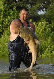 Let's get one thing straight right off the bat, I'm from Oklahoma, and in Oklahoma we noodle for fish. Noodling, or as we say it here in the Southwest, "noodlin' " is a method of fishing without a pole, without anything really except your bare hands. It's been legal at times, it's been banned, it's been ignored by the rangers for the most part, but to let you know the gist of how it's done it's simply this: you step about knee to thigh high in some of the muckiest dirtiest water you'll ever see on God's green Earth, and you plunge your arms into the muck about elbow deep searching for and feeling for those wigglin' catfish that tend to cover themselves with the muddy silt of the deeper wider rivers and the lakes in our fair state. When you find one you can try to wrap both hands around the slimy monster but the best way to catch a catfish if you're noodlin' is to cram your bare fisted hand down its throat, lift it up by its midsection, and call it done. Cheaper on bait, but let me tell you, those boys have teeth! Best to wear gloves.