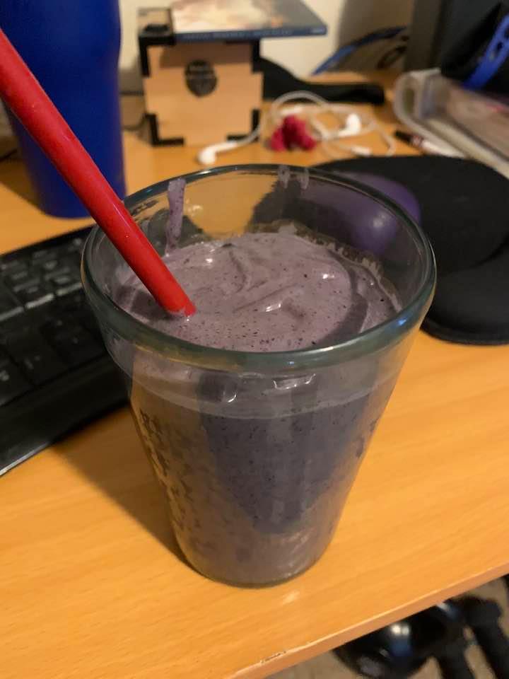 OK so you start out with about 10 things to make this great drink. You'll need a high speed blender thingy of some sort, I prefer the Nutri-Bullet because it's been so good to me in the past. I've never once had a issue with it other than maybe one blown gasket - easy fix. You must have the following: a medium avocado, about 1/3 cup of frozen or fresh blueberries. I use the frozen so it's like an actual smoothie when I'm done. You need heavy whipping cream and milk, honey, chia seeds or flax, and I add probiotic liquid and a raw egg. After adding everything together in no particular order, I blend it for about 30-40 seconds and take the canister off the Nutri-Bullet to shake it up before blending it 30-40 more seconds. I just want to be sure it's completely blended.