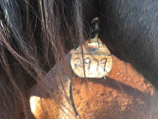 There's more to the story of course, and I'll save that for another blog post, but suffice it to say that on that day, October 11, 2016, #2979, a big beautiful bay American Mustang gelding became my new best friend; and naming him after the city of Norman, Oklahoma was easy! It was that or Boomer. His middle name is Brock for his trainer Tim, and of course he bears my surname. When Gary, the BLM hand, cut the nylon tag with the number on it from Norman's neck he handed the tag to Tim, who then handed it to me, symbolizing that Norman was no longer wild or captive. Norman was now adopted, I think I cried in my soul. He deserved to be loved, and on this day he demanded it. Thank you God.