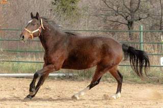 There was another set of people there too. There was a man, his wife, and her young adult daughter, who looked to be around 18 or so. The couple were quiet, and moved about, watching the daughter, and listening to the eager man wearing the sling. It became obvious by counting the trucks and cars in the parking lot, that these two couples had come together in a truck with a very large trailer. The fact that the quiet man had the keys in his hand, led me to know that he was the owner of the truck and trailer. This meant one thing to me, he had to be a trainer, the other man was the buyer. The man with the sling bought or adopted horses, and the quiet man trained them. I figured this out about the same time that Norman decided to put his large imposing head over the fence and onto the top of my head without warning! "He likes you!" said the quiet man; that point was obvious to everyone now, as the horse continued to press himself closer to me, and through the rails of the fence. If he had arms he would have reached through the fence and grabbed me, probably holding me against his chest, it was quite interesting how Norman would not allow other horses to come near me. Using his body, his tail, his voice, and his feet, he kept all of the others away, and stayed as close to me as he possibly could. To the quiet man, who was now smiling, and sticking out his hand for an introduction, this meant that #2979 had found his match, whether or not I was obliged to return the sentiment.