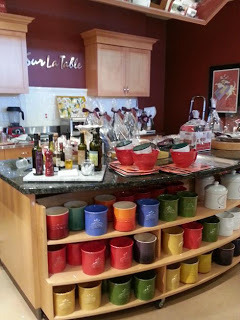 If you're in the neighborhood - - and even if you're not; make your way to 14400 Clay Terrace Boulevard #100 Carmel, IN 46032 to see the glories, the beauties, and of course the great sales at Sur La Table! To put it bluntly, it's one of the best little shop in Indy! Take a few dollars with you, expect to be surprised, but above all, expect to be pampered. From the moment we walked into the brightly illuminated gift and menagerie store in the Clay Terrace outdoor mall, I knew I was in heaven...Kitchen Heaven anyway. Jennifer and her staff walked me through rows and aisles full of colors, textures, styles, and more. My eyes fell first to a few things my kid would die for; and my Christmas shopping for 2012 officially began. I was smart enough NOT to bring my credit card with me this time, but I know I'll be back, and when I do, the kids will benefit most. Oh, I can't say that, I found an automatic espresso and latte machine I've got my eyes on! Happy Birthday to me in a few weeks, that's for sure. First, I thought of Caity, and found a few little owls for her kitchen. I found salt and pepper shakers, big spoon holders for when she's cooking. I found a cook book rack with owls too - their little wings are stretched out to hold the book! Reuben was next, but only because Laura was shopping with me and I couldn't very well buy anything for her with her standing there - even if it was mostly pretend shopping. For Reuben it's all about the rooster! I don't know why he loves them, but he does..and I found one. The best ceramic rooster ever! Don't tell him, it's a surprise. Throughout the store I found this and that; sauces, spices, gadgets, and more. I found coffee paraphernalia - filters, flavors, cups, widgets, you name it, I found it!! I wanted to bust out my birthday wish list right then and there..so I did. I pulled out my new phone and took about 10 photos of things the kids could buy me without the fear of me ever returning or regifting it. I could have 18 flavors of olive oils and never grow tired or collecting or seeing the bottles in my kitchen. I'd just buy a bigger spice rack! I found cups and saucers in every color of the rainbow and just as I was about to pick out one I had to have I saw another one I just had to have! They all went on the list! Aprons of all styles adorn the aisles at Sur La Table! You'll simply fall in love with the pots, the pans, the scrubby things, the soaps, the dishes, the...the..the everything! I think i spent an hour just wandering around and another one narrowing down what it is that I'll end up buying soon - - which of course meant grabbing a second latte from Jennifer compliments of her new Starbucks latte Verismo espresso latte machine..the reviews rave on, and they should. Hey, when Starbucks didn't have the machines you could find them at Sur La Table! (I'm going back!) Thanks Jennifer for the tour, for the love, for the fun!! Indianapolis has a well kept secret, but I hope not for long!!