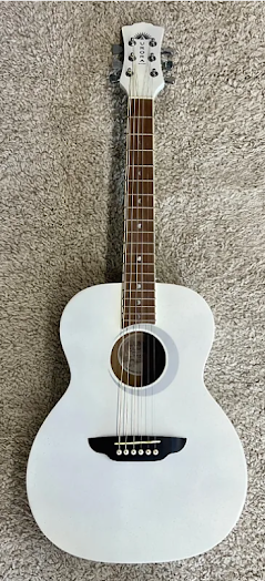 So, how did I end up with Fionn? Well, simple story really. I went to Reverb and looked up white acoustic guitars on sale, and there it was. I'm going to say he. Most of my guitars are boys. I have a girl coming tomorrow - her name is Starr. (for Belle Starr) The word "Fionn" is Celtic, and it means fair one or white. I could have named it "Blanca," I suppose, but I am more inclined to call things by something that I'm closer to; and that would be the Celts.