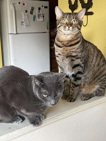 This morning, as they do, the "boys", meaning Bilbo and Sam, were in their usual position(s) of one dominating the other and looking THAT way. I usually click my tongue and shoo one or the other off of the other, and they resume in another room. They also lay around the bed(s) kissing and licking one another, presumably cleaning one another, but I really think they may actually be in a relationship. I'm not going to ask. I just continue to shoo them when I see them being what I would deem inappropriate.