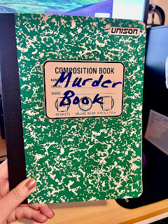 After the Historical Romance book, which is what I call the Sex Book, I will write the Murder Book. The really cool title for the Murder Book is; wait for it, The Murder Book! Yes, it's so classic, I know, right? I'm actually in the thick of it now. I have a green notebook, I'll show you, and I'm writing the notes in it that will become the written notes, which will become my paragraph guidelines. The paragraphs then get put into chapters, which are later organized into chronological order, unless I'm using flashbacks. It could happen. I write from the ground up, and keep it as organic as I possibly can.