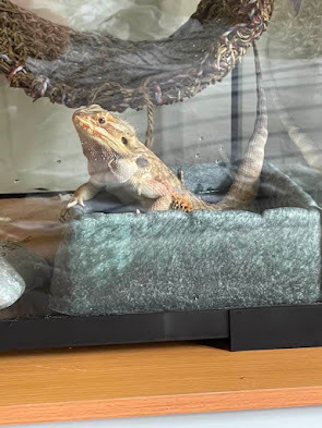 Lizards, like bears and rodents, go into a type of hibernation. I didn't realize that was true. I knew my snakes did; it only makes sense that my Beardie will too. It will happen around the end of November, and she'll probably rarely eat and rarely move. She may end up staying in her hide rather than basking. She may decide to keep things private and never even speak to me, which would really be sad, but I would understand. It doesn't mean I won't play Celtic music for her, I will. She will probably wonder about my sanity; there is very very little Celtic activity in the scenic deserts of Australia - - very very little. She is possibly the only Bearded Dragon who understands Gaelic.