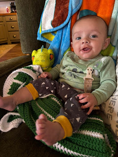 At just six months old, he's sitting up and looking at everything he can. He's taking notes whenever big sister decides to school him. He's probably going to get taller than she is, but for now, she's a head taller and able to tell him later when they compare photos. Averick isn't my new grandson's first name; he was named for his father, Reuben, but he goes by one of his middle names. Both kids have really wonderful names.