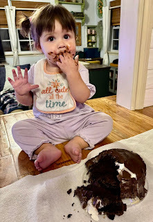 When I say I was over the Moon, I mean it. I love babies, and my kids' babies are the only ones I love more than my own. I won't give you her full name; we call her Evie. Evie was born on December 15, 2024, and of course, because she's lucky, she was born in the Great State of Oklahoma. My other two grands were born in Indiana; they're Hooisers! Evie is now about 18 months old and running everywhere, keeping her parents on their toes. Her snappy, dark eyes and thick, thick, thick brunette hair set her apart from all the rest in our family; she certainly took after her mommy.