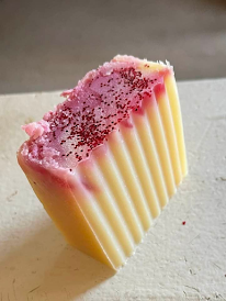 WHAT a GLORIOUS disaster! From time to time I have to simply sit back and admire the grandeur of the mess, the mighty mighty mess, that I am often capable of creating. Yes, it was on accident of course, but wow, what a ride. I have to admit, when I was in the middle of the downhill turn on this particular soap pour, I wasn't all grins and giggles about it. I, was in fact, rather sad because I was using my favorite of favorite scents (Sandalwood) and I had added a bit (just a touch) of Caribbean Teakwood to add just enough of a coastal smell. I was going to call the bar "Sand" or "Surf" I hadn't decided. Now, I guess if I was truly honest with myself, I could call "Rice Krispie Treats Smothered in Maple Syrup" because that is exactly what it turned out to resemble. What do you think? Yes?