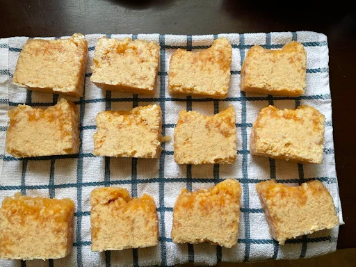 This mess was brought to you via me (Jude) trying to skip a corner or two, and not really doing the needed research to do that. I'm like most people, I'm rather impatient, and since I've convinced myself that I already know most of everything there really wasn't a really good reason to do any research! I mean C'mon, how hard can it be to substitute palm oil in a recipe for solid soap? The little research I did manage to read between bites of my ham and avocado sandwich, led me to believe that using more avocado oil (good choice usually) was an excellent substitute....but maybe I wasn't supposed to use as much as I did. I'm not saying that out right mind you, but the fact that I could literally pour the oil off the soap after it sat for 24 hours in the molds makes me think that yeah....maybe, I did not do it the way a professional soapster may have completed the task....but only MAYBE.