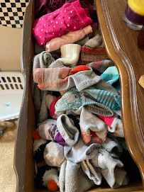 Mom looked at me and with that wit and brilliance she often mustered in her face, she said to her youngest kid, "OK, have it your way, but if I ever catch you matching your socks again you'll have to not only fold them and put them away properly, you'll have to wash them by hand and let them dry outside too." I accepted the challenge -- that was....well, over 50 years ago. I'm obstinate. I admit that. I don't fold my socks, and I don't match them either, and it's more or less a thang now and has less to do with obeying mom. People who know me always expect to be able to look down at my feet and see that I have on two different colored socks. They may both be white or gray, but they have a different trim usually -- I am who I am.