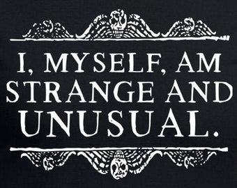 I bought the t-shirt that reads "I too am strange and unusual", which was a line out of Beetlejuice. Winona Ryder's character Lydia Deetz proclaims this to be true about herself. I guess in some ways, I just have to relate. I don't have much of an option. I do things from time to time that certainly set me apart from the rest of the crowd. I'm not embarrassed by the fact that I don't match my socks. That's one way I suppose my friends can describe me to their other friends. I began not matching my socks in the 3rd grade, which was the same year I decided my name was Jude rather than Judy, and I changed it myself on every paper I turned in at school. I actually refused to respond to the name Judy for many years - - It is what it is. Possibly strange, possibly unusual.
