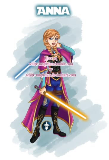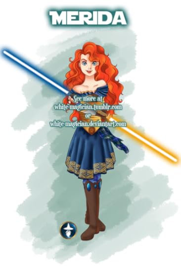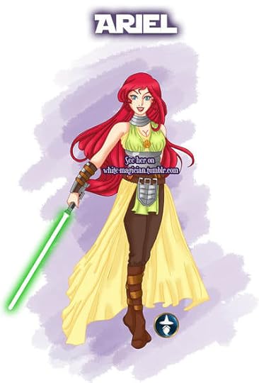 On a fun note, I stumbled on a wonderful artist who did creative envisioning of the Disney princesses in the world of Star Wars, as Jedi. It was eye-opening because some translated so much better than others. Most of the Disney princess movies are appealing only to "Disney princess" people, but a surprising few have an additional audience beyond the original fan base. You can tell by the costumes, especially if you're familiar with Star Wars. Here's a gallery of some of them. (Be sure to remember the artist as well, she's got watermarks on the images)