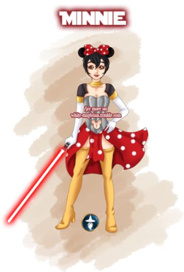 Check out Cinderella! She looks so authentic it's easy to believe she was somewhere in the Prequels, in the back of the Jedi Council. And what about Minnie Mouse?! She reminds me so much of Princess Leia. But Aurora looks--weird. Just weird, like 1960s sarcastic comedy about men who are heralds. Guess this movie was really dated. And Rapunzel's long hair and bare feet are honestly impractical for fighting as a Jedi.