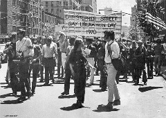 A year later, the priest and his partner prepared to participate in a parade to celebrate the one-year anniversary of the Stonewall riots. A light beamed from the Oscar Wilde bookstore, and as if drawn by a beacon, a few faceless strangers shuffled out of the shadows to gather in awkward silence. By the time the sun first peeked over Brooklyn across the East River, a crowd of hundreds milled about the bookstore that had become the de facto headquarters for the audacious planners of Christopher Street Liberation Day to celebrate the first anniversary of Stonewall. At the time, they didn’t realize they would make history in the first Gay Pride march.