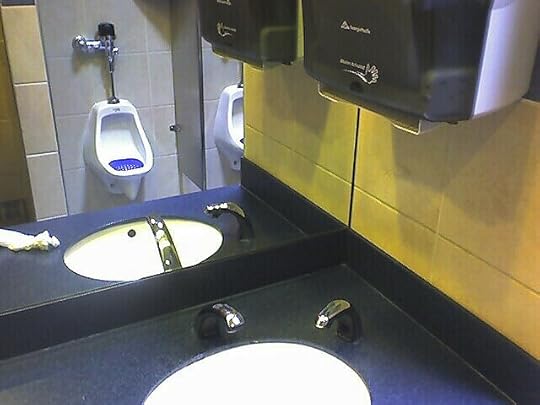 Yes, ladies and gentlemen, boys and girls, children of all ages, it’s time we delivered a clean cracking high five to all the hands-free-everything bathrooms of the world. After all, when we get back to hands-free-everything we’re getting back to our roots. Squatting off the side of a cliff, our ancestors probably had a no fuss, no mess, no problems attitude to getting the job done. Now here we are in the future and it’s fun finding occasional mall, airport, or restaurant bathrooms who pay tribute to the past with their hands-free-everything ways.