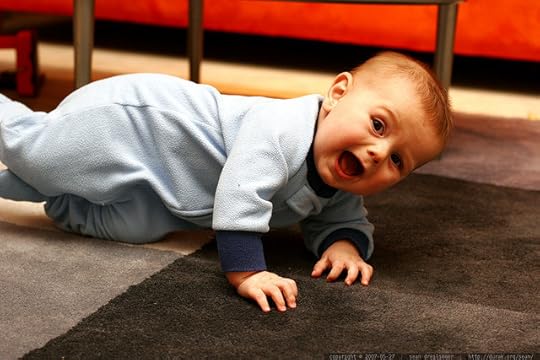 First, there is rolling. That cute little baby-powder ball of flabby arms and puffy diapers twists and shimmies on the cold linoleum with a big smile on her face. This marks a major step as baby is learning to move on her own. Don’t laugh because you were once a flabby, wiggling diaper ball too.