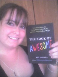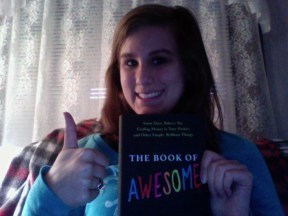 “So…I heard about this blog from a friend and started following it just a few weeks ago! I told my other friend about it, who also knows that I never get things in the mail at college and I check my mail last week only to find The Book of Awesome in a cardboard box in my mail! I’ve been loving it ever since…”