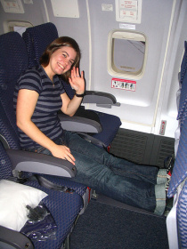 Since the two of us happened to be sitting in the Emergency Exit row, I therefore became solely responsible for busting the door open if our plane crash landed. Yes, the flight attendant coached me on emergency moves and I nodded with steely eyes and firm lips while Snoozy Samantha snored on beside me.