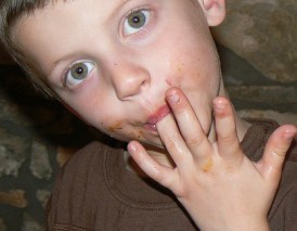 When you reach Total Snack Nirvana you’re loving the moment, but you’re sadly stuck with pasty mortar on your fingers that needs cleaning before getting red skid marks on the carpet, couch, or cat.