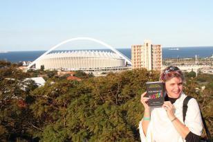 “I asked for The Book of Awesome as a gift from my stepmother who bought it for me in Canada. It came all the way from Montreal to Durban South Africa via Ethiopia and Johannesburg. It’s a well travelled book and I love it. Here is a picture with Durban Stadium and the ocean in the background. The Book of Awesome is at the World Cup!” – Kim