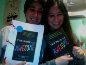 “Hey Neil, My boyfriend and I found your blog back in September when we started dating. Checking it together quickly became a new tradition and brought us closer as we realized that we both valued the same simple, brilliant things in life. The day the book of awesome came out I got home to find a box sitting at my doorstep — my boyfriend had pre-ordered it for me months ago! To get him back with another awesome gift, for his birthday I made him my own personalized Book of Awesome called “1000 Awesome Things About Us” describing all the awesome things about our relationship. Thank you for inspriring us!” – Julia & Nicky