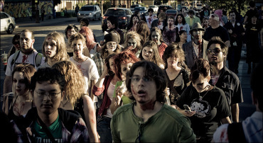 Bloody arms in tattered rags start smacking the truck and hollow eyes connect with yours through the window. As your girlfriend frantically pushes down locks you hit the gas and scream down side roads till you get to your aunt and uncle’s 24-hour diner.