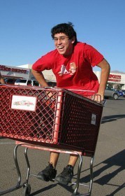 4. The Station Wagon. Remember that backseat in old station wagons facing the opposite direction? This is the shopping cart version. Hold on tight to the front of the cart and hope the driver doesn’t steer you into the egg wall.