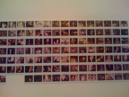 After the picture slides out and the color fades in he staples it to a foam board in his front hallway. Over time he’s created a giant collage presumably titled Anybody Who’s Ever Visited Me and turned a blank white wall into an artsy conversation piece.