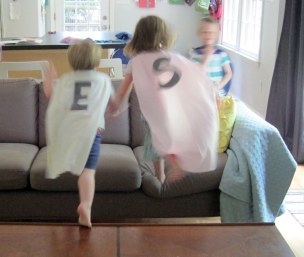 Yes, made up games you played as a kid let creativity roam wild to the outer edges of our brains. Rules are invented and changed, action takes over the living room, and big-eyed fun, screaming smiles, and sweaty foreheads crash together in a great big bang on Saturday afternoon.