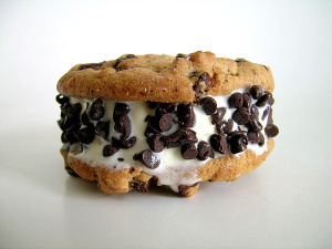5. Melting ice cream sandwiches. Squeeze those foamy black cookies together so the ice cream drips all over the place. Just try eating one without getting a smear of vanilla on your nose and big chunks of cookie sticking to your fingers.