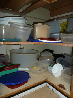 Oh sure, you might have good days. Perhaps like me you organize your entire Tupperware cupboard in a fit of rage one afternoon — sorting lids into piles, sticking containers together, maybe even throwing a few in the garbage. But slowly the mess creeps back in, inch by inch, day by day, until you're met once again with black billowing clouds and singed overalls.