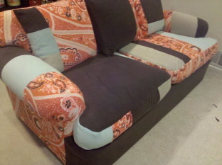 Years and years and years of sitting finally helped the couch get demoted someplace nobody cares about it. Stains on the cushions, missing buttons, and cat-shredded armrests only add to the comfy feeling. Whatever, broken springs, brown zig-zag patterns, and foam puffs popping out all over the place. Those just helps us cave right into the twisted blanket cocoon in front of the flickering TV.