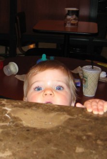 You're having a chat in your booth when a rogue child suddenly appears at your table. Everybody stops to look at the Junior Runaway, living the romantic nomadic life between sticky tables and wobbly chairs at the chain restaurant. There are smiles, a couple friendly hellos, and then a parent appears to claim the child.