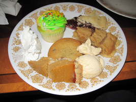 It's time to fill your plate with two kinds of pie, Grandma's homemade squares, a few scattered pieces of fruit, and a big swirl of whipped cream over everything.