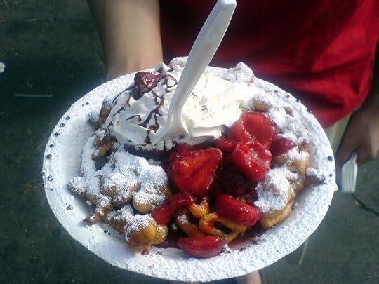 • Funnel cake at the amusement park. "Hey, are we about to spin upside down on the roller coasters, crash into each other in bumper cars, and run around a pitch black haunted house? Cool, just lemme load my stomach up with a giant paper plate full of deep fried dough first."