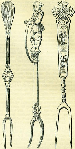 According to our egghead pals at Wikipedia, although the Ancient Greeks used forks as a serving utensil it took until the 10th century for them to become popular in Western Europe. Before then, Westerners only had spoons and knives. Most people chowed down with their hands, some shared a group spoon, and rich folks dined holding two knives, making them look like Raphael from ninja turtles.