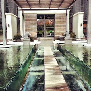 The Steenberg Winery itself is a venue that will wow you (and you might even consider planning a special event). Even though the architecture seems larger than life, it’s nevertheless warm and inviting. The chandelier in the tasting area is one of the first design elements to grab the attention – what seems like thousands of pieces of ruby-hued, shaped glass pieces cascading from the ceiling. Large windows make you feel as though the spectacular water feature is about to invite itself into the dining area, and of course I couldn’t resist my childlike urge to take a walk along the stepping stones.